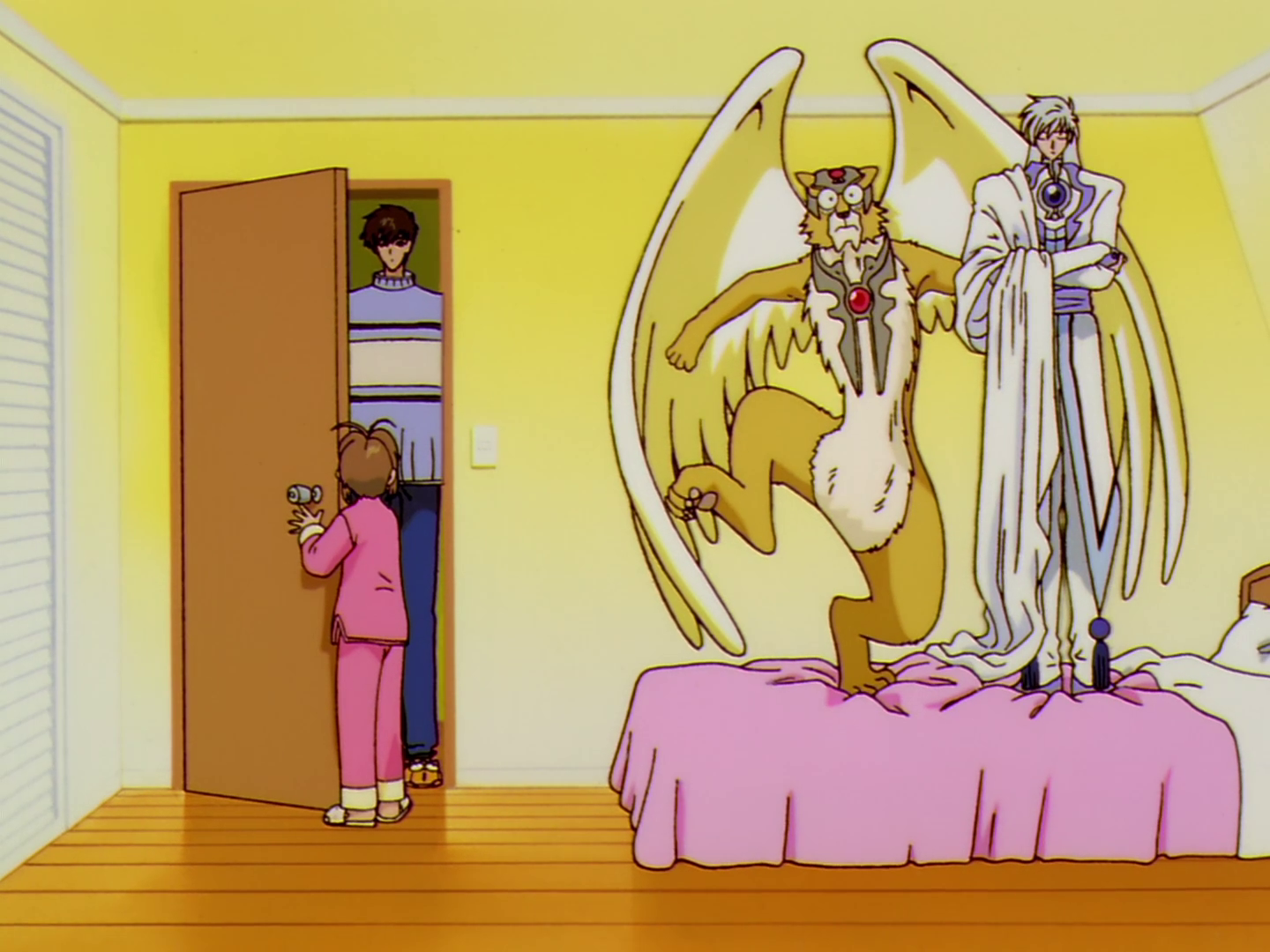 Sakura, Tomoyo y Shaoran fueron al parque pingüino acompañados, claro esta, por Yue y Kerberos, al parecer la energía del mago Clow se sentía en el ambiente, debían estar muy pendientes pues en cualquier momento podría atacar, sin embargo solo se trata de una falsa alarma; de regreso a casa de Sakura sus guardianes se ven ante una preocupante situación, al parecer por el poder del mago Clow, ya no podían regresar a sus identidades falsas.